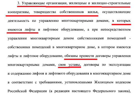 - Проект Устава ТСЖ Перовская 22 корпус 2 в новой редакции в соответствии требованием ст.135 п. 2.3. Жилищного кодекса РФ "... в уставе указанного товарищества собственников жилья должна быть предусмотрена обязанность заключить со специализированной лифтовой организацией договор на оказание услуг и (или) выполнение работ по техническому обслуживанию лифтов и лифтового оборудования в многоквартирном доме..." (вступает в силу с 01.09.2026 г.). 564-ФЗ от 29.12.2025 "О внесении изменений в ЖК РФ" Про лифты в Уставе ТСЖ, ЖСК. (Последний абзац ФЗ). В проекте Устава ТСЖ - п.4.2.8.